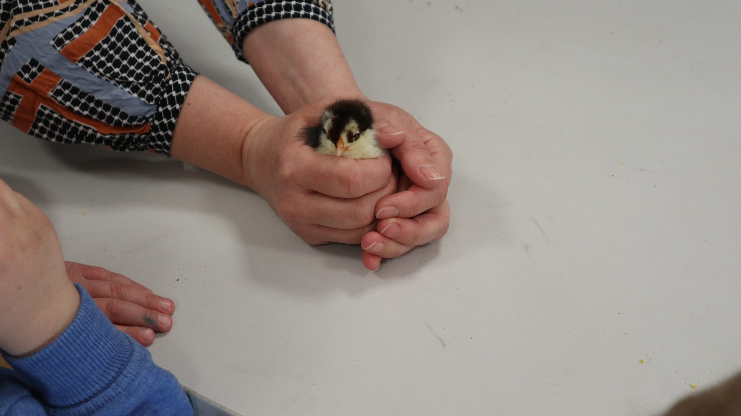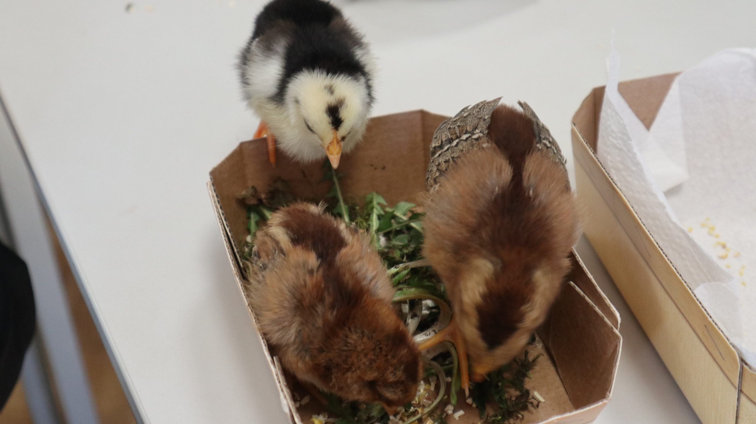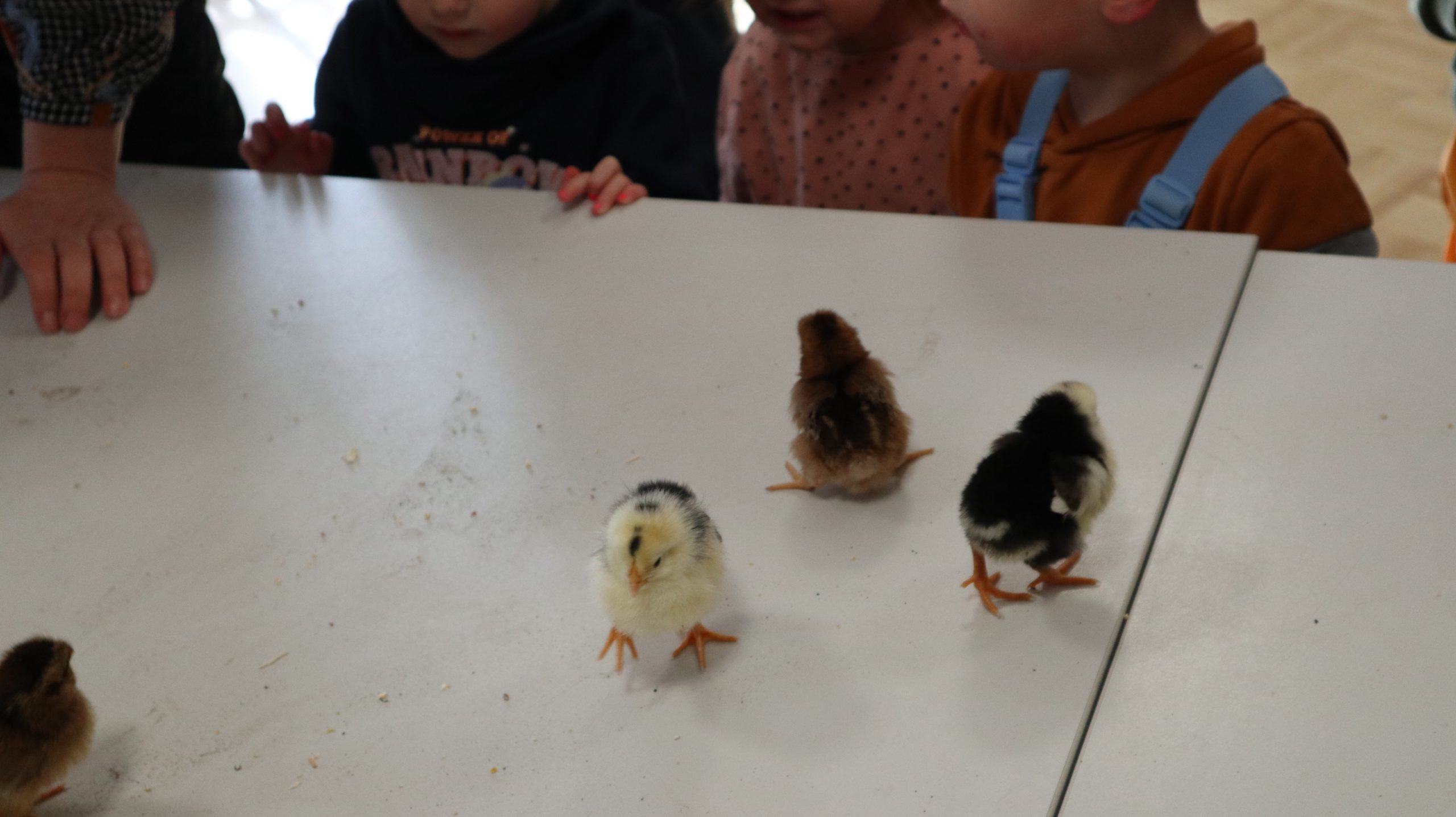 Wir waren mit allen Gruppen nacheinander beim Lernstandort. Dort haben wir die Küken angeguckt, gefüttert und gestreichelt.