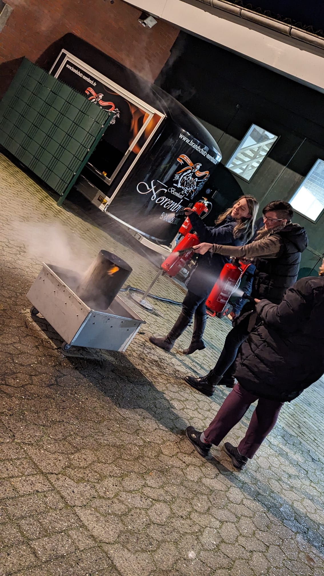 Unser Team hat sich zum Thema Brandschutz fortgebildet. Damit wir auch im Ernstfall schnell handeln können, haben wir das Löschen mit den Feuerlöschern vor Ort geübt.
