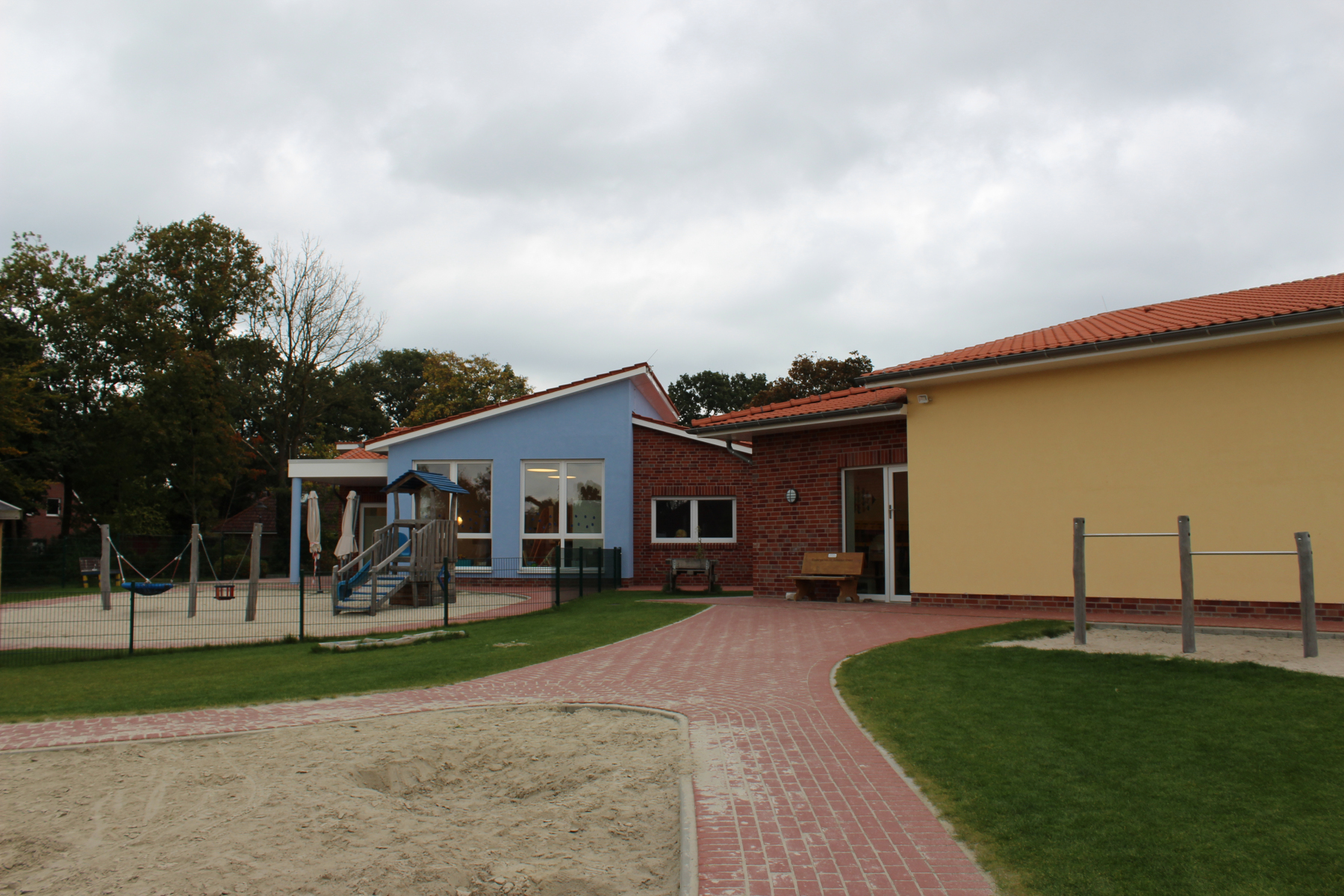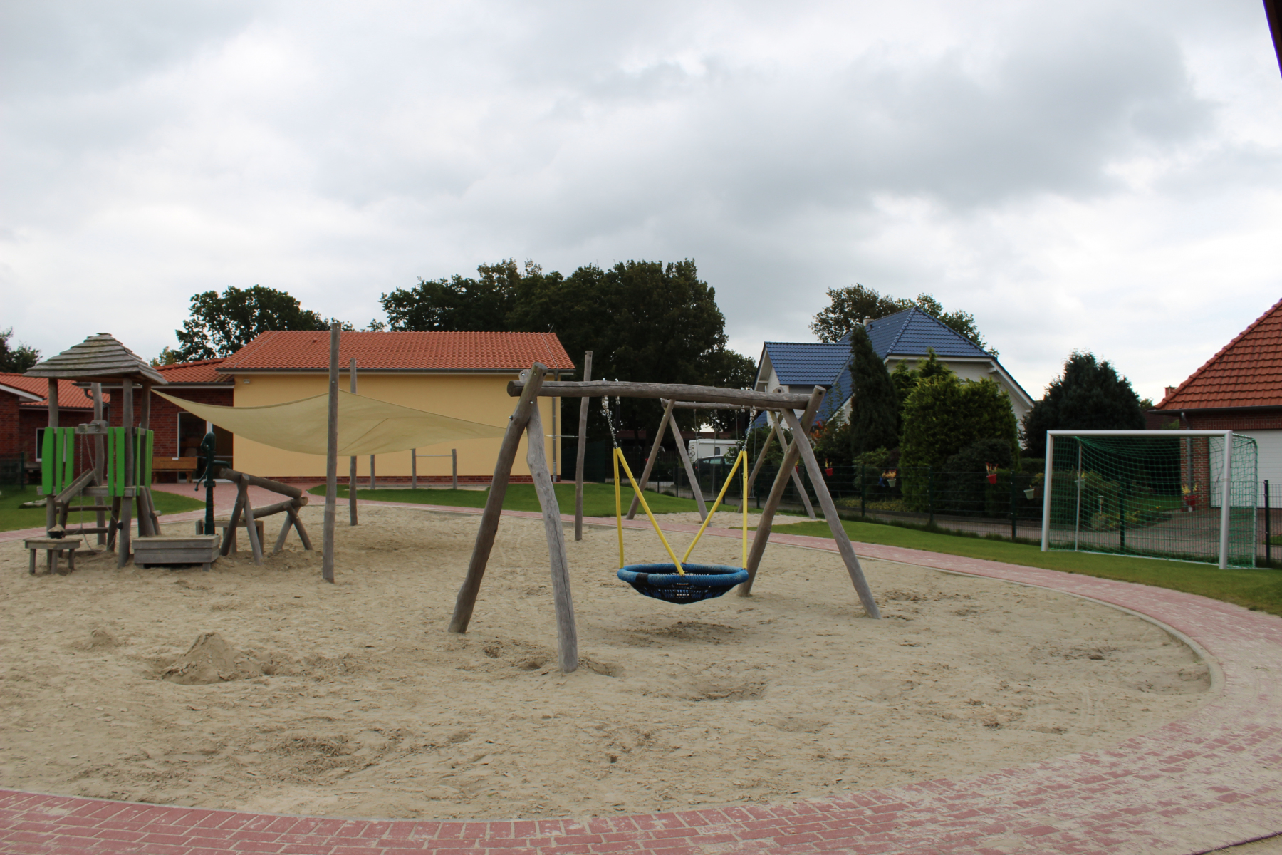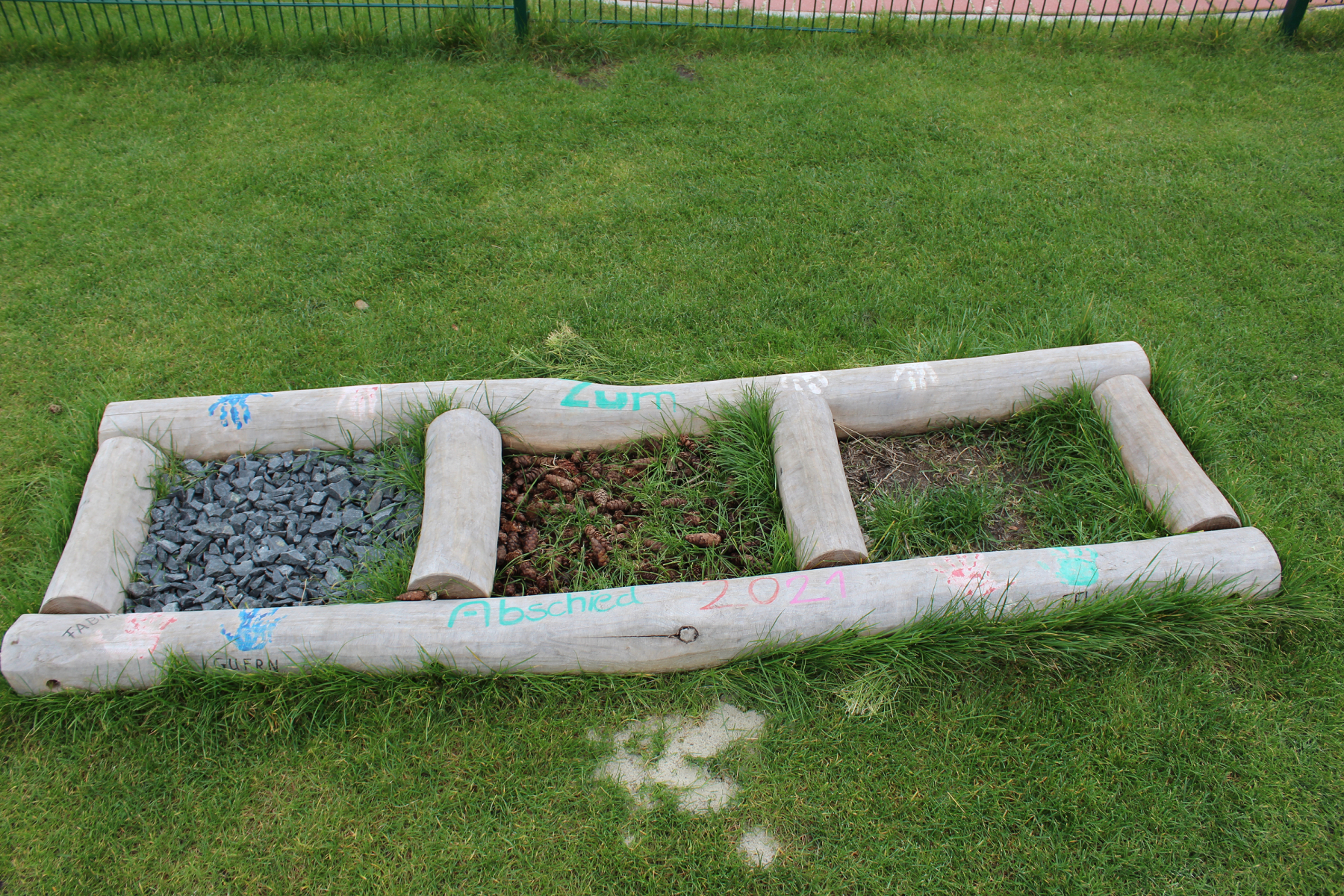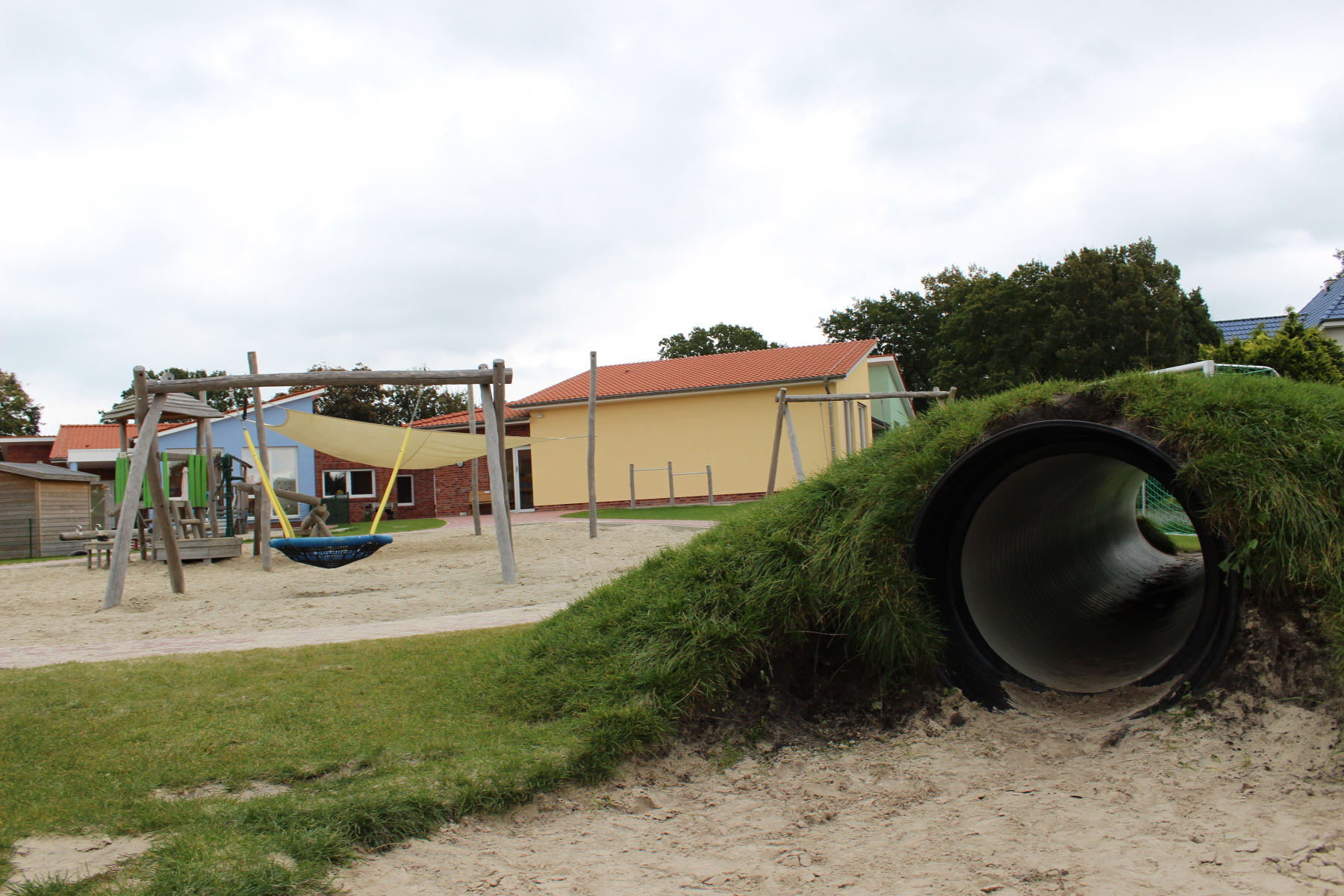 Unser neu angelegter Spielplatz bietet unseren Kindern viel Platz und Spielmöglichkeiten. Damit “die Kleinen” nicht unter die Räder kommen, darf die Krippengruppe auf einem separat abgetrennten Bereich mit Altersgerechten Spielgeräten die Zeit an der frischen Luft genießen.
